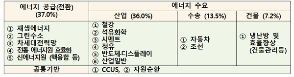 주요내용을 살펴보면 에너지 공급, 에너지 수요(제조, 수송, 건물 등)를 포괄하고 산업분야의 저탄소 신공정 상당수가 전기화·수소화와 관련된 것을 감안해 이를 확대하는 방향으로 진행된다.