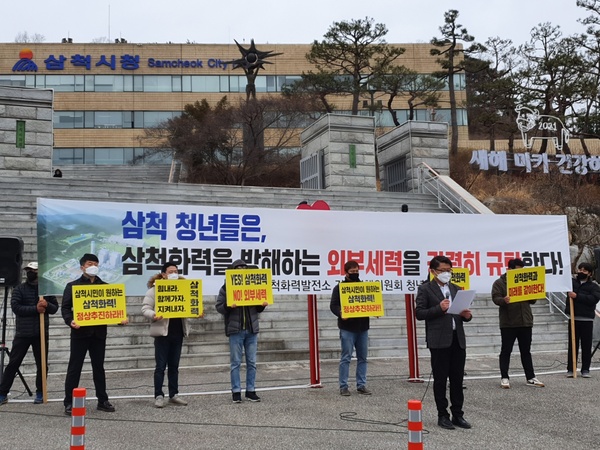 삼척시 청년단체인 ‘삼척화력발전소 건설대책위원회 청년위원회’(대표 김영호, 이하 ‘청년위원회’)는 지난 25일 13시10분 삼척시청 앞에서 삼척화력발전소의 안정적 건설 진행과 완공을 촉구하는 집회를 진행했다.