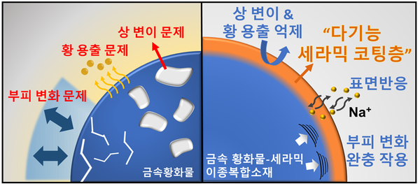 ▲ 금속 황화물 소재의 열화 메커니즘 및 복합소재에서의 다기능 세라믹 코팅층 역할 요약
