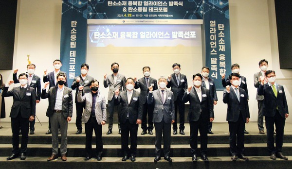 ▲ 탄소소재융복합 얼라이언스 발족식(출처:산업통상자원부)지난 4월, 탄소소재 수요확대와 신시장 창출을 지원하기 위한 탄소소재 산업 연대·협력 협의체로 탄소소재 융·복합 얼라이언스가 출범했다.