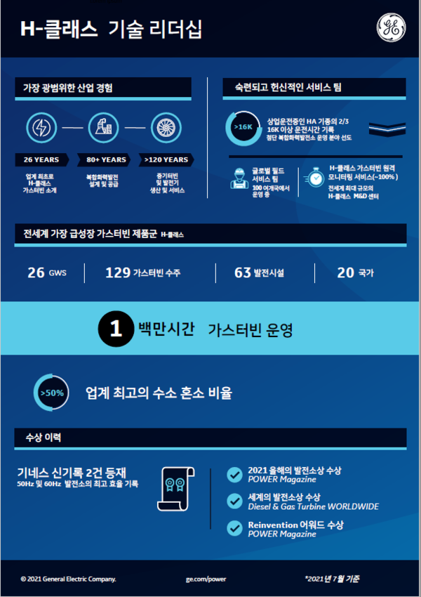 한편, GE는 H클래스 가스터빈, 수소혼소, 탄소 포집·활용·격리 등 신기술 적용해 탄소배출 제로 목표 달성을 포함한 지속가능한 발전을 지원하고 있다.