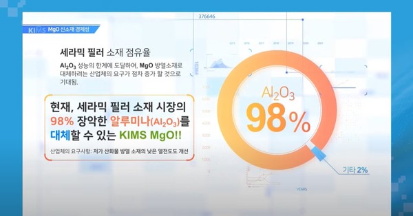 이에 가격경쟁력과 성능이라는 두 마리 토끼를 잡은 격이라며 기존 산화마그네슘은 일본의 두 업체에서만 판매중인 상황이라고 말했다. 이어 기존 알루미나 대비 5배 이상 가격이 높아 일본산 산화마그네슘을 사용할 수 없었던 것을 국산화해 의미가 크다고 말했다.