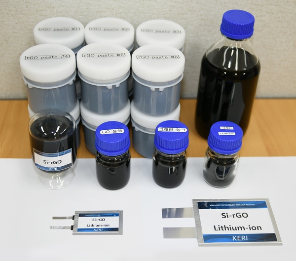 KERI는 실리콘과 그래핀의 복합화를 통해 이상적인 리튬이온전지용 고용량 음극재 제조기술을 개발했다. 10년 이상 그래핀 연구에 매진해 온 연구팀은 특화된 산화·환원 공정을 기반으로 높은 결정성과 전기 전도성을 가지는 ‘산화·환원 그래핀(GO, rGO)’을 제조할 수 있는 기술을 개발했다.