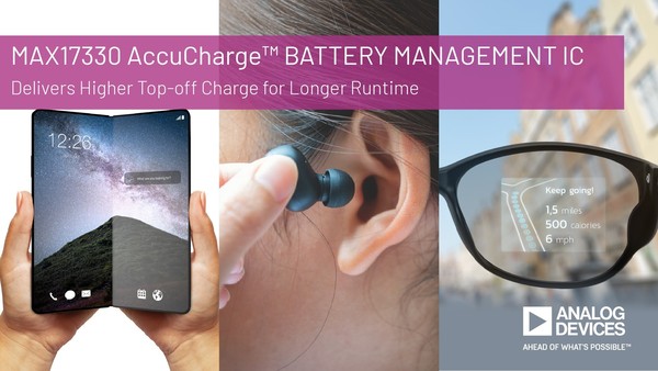 MAX17330은 폴더블 스마트폰과 태블릿은 물론 AR·VR 스마트 글래스와 같이 병렬 셀을 사용하는 디바이스의 배터리 관리도 간편하게 하는 것이 특징이다.