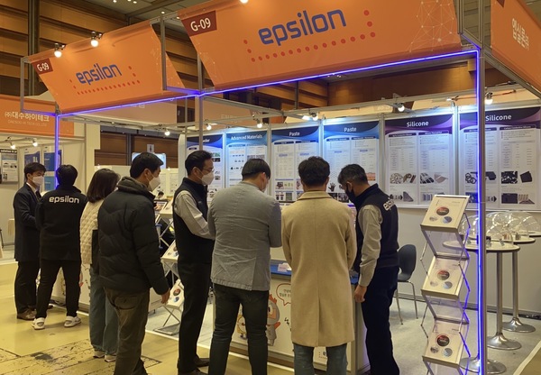 엡실론(주)(대표 김연화)은 지난 11월 17일부터 19일까지 서울 코엑스에서 열린 ‘제9회 국제첨단소재 및 융복합기술대전(INTRA 2021)’에서 전도성분말, 저온경화형 실리콘, 전기자동차용 방열실리콘 패드, 고가의 웨어러블용 은페이스트(Ag-Paste)를 대체한 은코팅구리분말 페이스트(Silver coated Copper Paste) 등을 선보여 관련 업계의 이목을 집중시켰다.