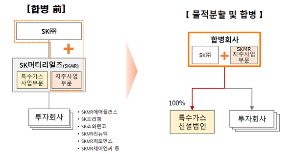 이번 임원인사 및 조직개편은 금일 SK머티리얼즈 지주부문과 SK㈜의 합병 및 기존 SK머티리얼즈 특수가스 사업부문 일체를 물적 분할한 신설법인 설립이 마무리 됨에 따라 단행됐다.