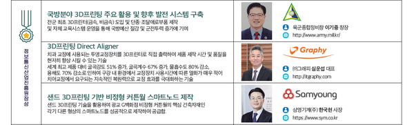 우수사례집에는 3D프린팅 기술을 활용, 우수한 성과를 창출한 공로로 과학기술정보통신부 장관상, 정보통신산업진흥원장상, 3D융합산업협회장상을 수상한 총 10개의 기업·기관들과 우수사례가 소개됐다.