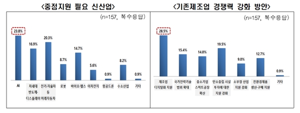 우리나라 산업 전체를 한 단계 발전시키기 위해서는 차기 정부가 AI산업, AI·디지털 인력 양성, 제조업 디지털화 등에 대한 중점적인 지원이 필요하다는 의견이 나왔다.