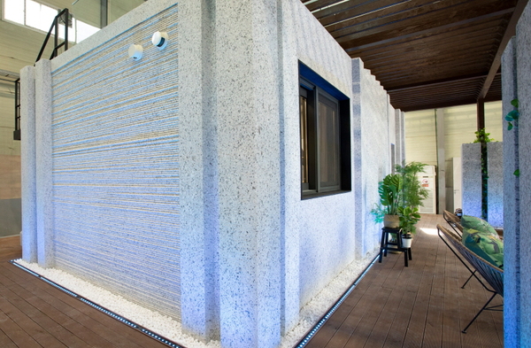 ▲ 3D 프린터로 구축한 벽체를 측면에 보존해 놓았다.