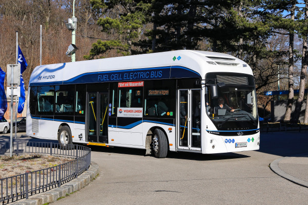 ▲ 현대차 수소전기버스 ‘일렉시티 FCEV’의 오스트리아 시내버스 정규노선 주행 모습(현대차)경남 창원에 수소버스 충전소 구축 모델 정립과 실증을 위한 버스노선 연계형 수소충전소가 구축됐다.