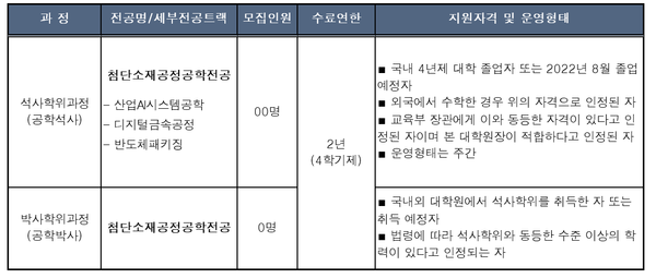 ▲ 첨단소재공정공학전공 모집분야 및 모집인원