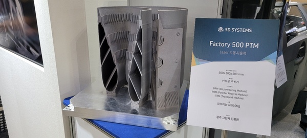 한편 국내 최초로 3D시스템즈의 대형 산업용 금속 3D프린터 ‘DMP(Direct Metal Printing) 500’을 설치한 광주그린카진흥원에서 적층한 선박용 추진기가 실물 전시됐다. 이 장비는 최대 500x500x500mm 크기의 부품을 생산할 수 있는 대형 금속 3D프린터로 특히 500W에 달하는 고출력 레이저 3개가 탑재돼 높은 생산성을 자랑한다.