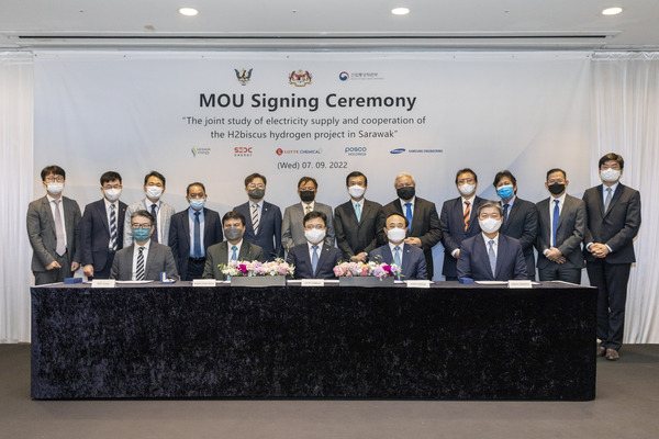 롯데케미칼, 삼성엔지니어링, 포스코홀딩스와 말레이시아 SEDC 에너지(Sarawak Economic Development Corporation Energy), 사라왁 전력청 등 5개사는 지난 7일 '말레이시아 사라왁(Sarawak) H2biscus 청정 수소 프로젝트'를 위한 수력기반 재생 전력공급 협력에 관한 MOU를 체결했다고 8일 밝혔다.