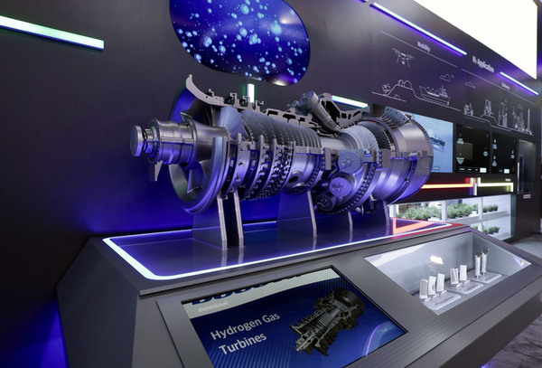 ▲ 두산에너빌리티가 개발하고 있는 380MW 급 수소터빈의 축소모형두산에너빌리티가 정부의 청정수소발전 비중을 2036년까지 7.1% 확대함에 따라 수소터빈 사업에 탄력을 받아 2027년까지 380MW급 수소 전소 터빈을 개발할 것이라고 밝혔다.
