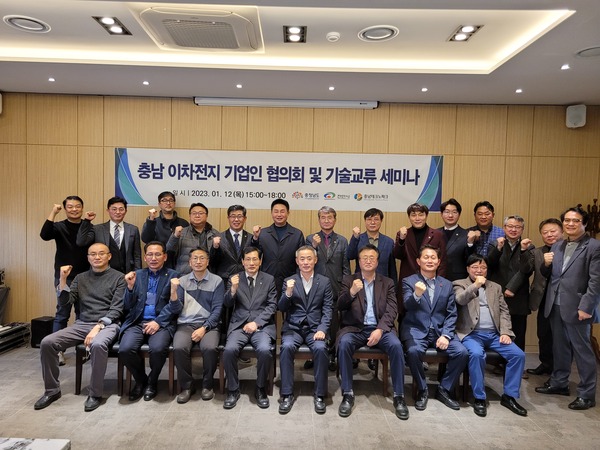 충남테크노파크(원장 서규석)는 12일 충남 천안 이담원에서 ‘충남 이차전지 기업인 협의회 및 기술교류 세미나’를 개최했다. 이날 세미나에는 유재룡 충남도 산업경제실장, 서규석 충남TP 원장, 김상호 충남TP 이차전지기술센터장, 김범종 KTL 센터장, 이정두 KEIT 이차전지 PD 등과 엔켐, 비츠로셀, 넥스콘 테크놀로지, 한국유미코아, 상신이디피 등 9개 기업의 대표 및 임원들이 참석했다.