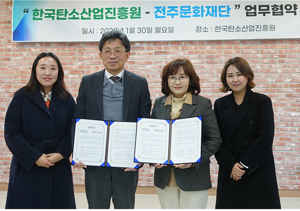 한국탄소산업진흥원(이하 진흥원)과 전주문화재단(대표이사 백옥선)은 탄소소재를 활용한 예술작품 활동 지원에 관한 업무협력 양해각서를 지난 1월 30일 체결했다고 밝혔다.