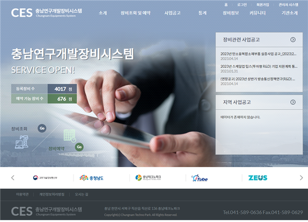 충남테크노파크(충남TP)는 충남 연구개발장비 DB 시스템 구축 및 공동활용 촉진 사업의 일환으로 구축된 ‘충남연구개발장비시스템(Chungnam Equipments System, 이하 CES)’을 통해 많은 기업의 장비 문의와 사용예약 등이 이어지고 있다고 밝혔다.