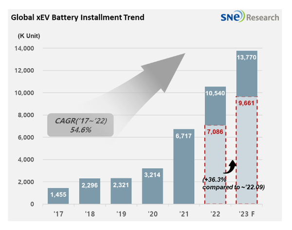 이에 대해 SNE리서치는 “고금리에 따른 경기침체 등의 여파로 중국과 유럽 등에서 성장세가 둔화하며 전기차 시장이 일시적 수요 둔화의 영역에 진입했다”고 해석했다.