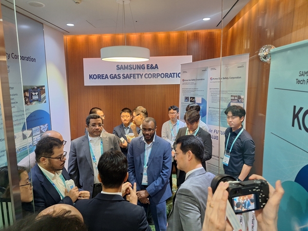 ▲ 한국가스안전공사 직원들이 `SAMSUNG E&A Tech Forum 2025에` 차려친 공사 홍보 부스에서 방문객들에게 공사의 핵심 진단기술을 홍보하고 있다.한국가스안전공사(사장 박경국, 공사)가 포럼을 통해 공사의 다양한 설비·진단기술을 선보이고 해외 산업현장의 확산을 위한 홍보를 진행했다.