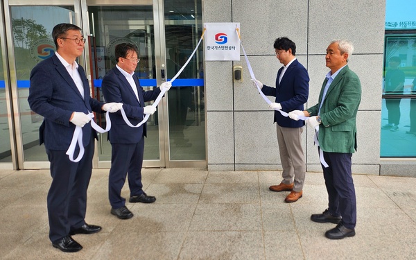 ▲ (左측 두번째부터) 박희준 한국가스안전공사 기술이사와 오재영 SZU코리아 대표는 완주의 수소용품검사인증센터에서 현판식을 개최했다.한국가스안전공사(사장 박경국)가 SZU코리아와 협력해 국내 수소용품 제조업체의 해외인증 취득을 지원하고 국내 수소산업의 글로벌 경쟁력을 강화할 전망이다.