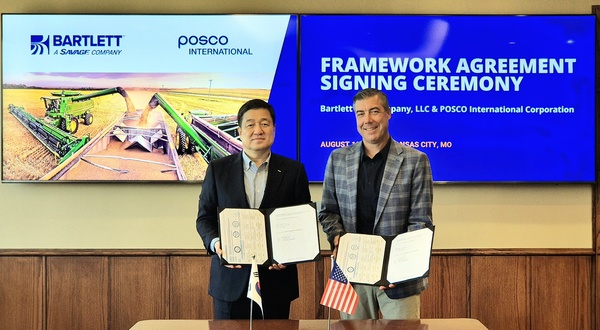 포스코인터내셔널(대표이사 사장 이계인)은 미국 캔자스시티에서 현지시간으로 18일 미국 곡물기업 바틀렛앤컴퍼니(Bartlett and Company, 이하 바틀렛)와 업무협약을 체결했다고 밝혔다.