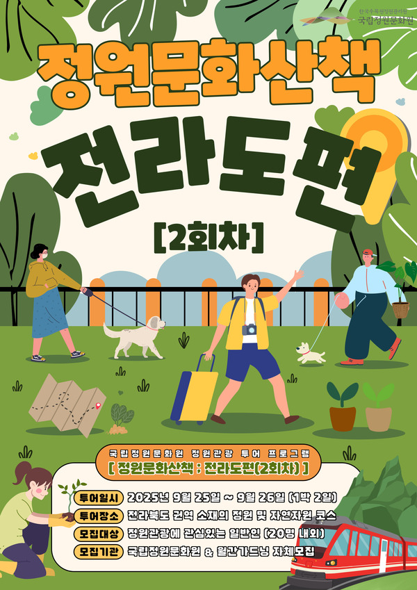 2025년도 ‘정원문화산책 ; 전라도편’은 전라도 권역의 멋과 풍류를 담은 새로운 문화와 역사, 정원자원 발굴과 더불어 이를 활용한 코스를 개발해 운영된다.