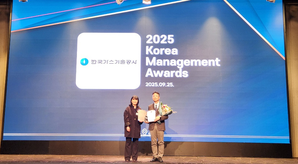 ▲ 한국가스기술공사 ESG경영처장이 ‘2025 한국경영대상’ 윤리인권경영 부문 대상을 수상하고 있다.한국가스기술공사(사장직무대행 진수남, 이하 공사)가 윤리와 인권존중 경영을 위한 노력을 인정받아 수상의 영예를 안았다.
