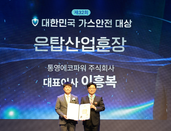 최고 훈격인 은탑산업훈장은 통영에코파워㈜ 이흥복 대표이사가 국내 최초로 천연가스 수급체계를 민·관 통합시스템으로 구축하고, 설비 건전성 확보를 통해 무재해·무사고를 달성한 공로를 인정받아 수훈의 영예를 안았다.