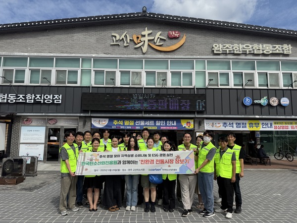 탄소산업진흥원은 지역 민생경제 활성화 및 전통시장 소비촉진을 도모하고자 전북 완주군에 위치한 고산미소시장에 방문해 추석 명절맞이 ‘친환경 전통시장 장보기 캠페인’을 진행했다고 30일 밝혔다.