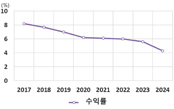 공급 과잉은 완성차의 판매 가격 하락 및 완성차 업계 전반의 수익률 저하로 이어지고 있다. 중국 주요 전기차 제조사의 평균 차량 판매가격은 ’21년 3.1만달러에서 ’24년 2.4만달러로 약 21% 하락했으며, 완성차 업계의 수익률은 ’17년 8%에서 ’24년 4.3%로 감소했다.