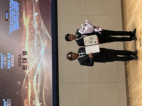 ▲ 최대영 크리오스 기술영업부장(右)이 기후에너지환경 R&D 2025 시상식에서 장관표창을 수상했다. 대창솔루션 자회사 크리오스는 액화수소 저장·수송탱크 국산화 개발을 통해 수입 의존도를 낮추고, 기술적 경쟁력을 입증했다.