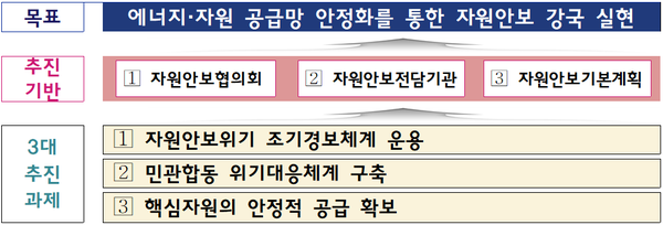 ‘국가자원안보 강화 추진방안’의 경우, 국가자원안보 강화를 위해 △자원안보위기 조기경보체계 운용 △민관합동 위기대응체계 구축 △핵심자원의 안정적 공급 확보 등 3대 과제를 추진한다.