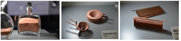 ▲ 이엠엘은 금속 적층제조용 순수구리를 생산하고 있으며 자사의 소재로 적층한 인덕션 코일 등을 전시했다.(출처:3D프린팅연구조합)
