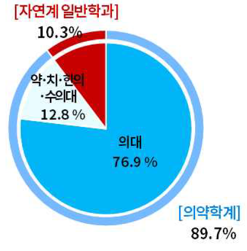 ▲ 자연계열 상위 1% 학과 분포(출처: 대한상공회의소)