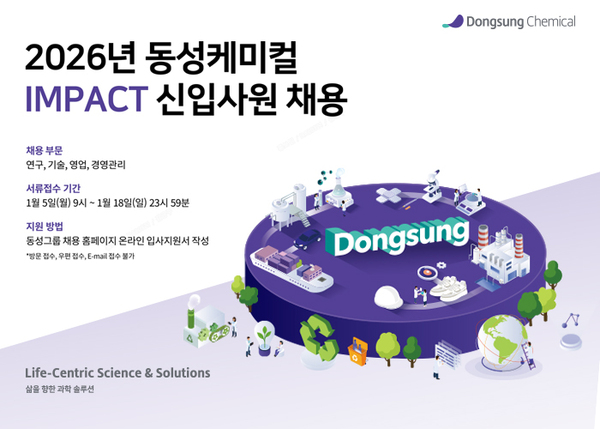 소재 과학 솔루션 기업 동성케미컬(대표이사 백진우·이만우)이 2026년 신입사원 공개 채용을 실시한다고 16일 밝혔다.