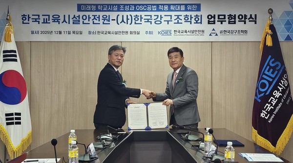 한국교육시설안전원(이하 안전원)은 11일 한국강구조학회(회장 최상현)와 미래형 학교시설 조성과 강구조 기반 탈현장 건설(OSC) 공법 적용 확대를 위한 업무협약(MOU)을 체결했다고 18일 밝혔다.