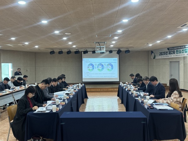 ▲ `2025년 제2차 전북특별자치도 탄소산업발전위원회`에서 산·학·연 탄소산업 전문가들이 탄소산업 육성 및 지원 계획 안을 검토하고 있다.