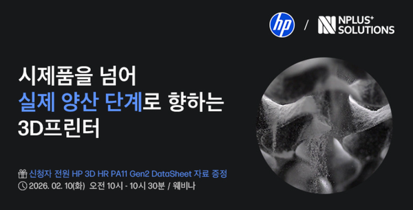 엔플러스솔루션스는 오는 2월10일(화) 오전 10시부터 ‘시제품을 넘어 실제 양산 단계로 향하는 3D프린터’ 웨비나를 개최한다고 밝혔다.