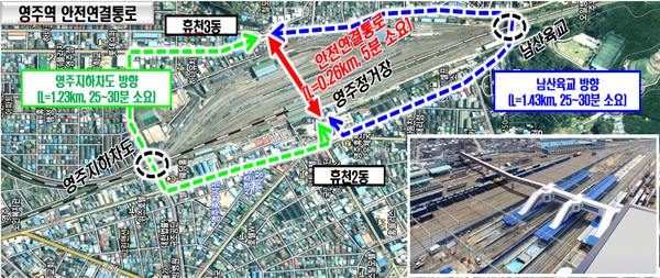 이에 강원본부는 지난 2024년 3월 영주시와 위·수탁 협약을 체결하고, 총사업비 약 136억 원(공단90%, 영주시 10%)을 투입해 선로를 횡단하는 안전연결통로를 신설했다.