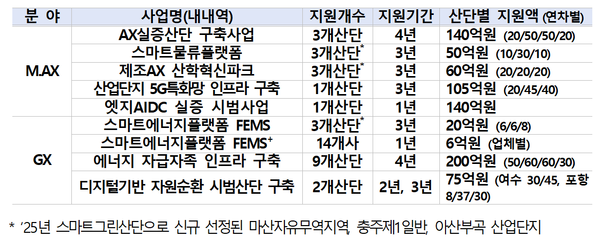 산업부는 2019년부터 현재까지 24개 산업단지를 스마트그린산단으로 지정했으며, 스마트그린산단을 대상으로 AX 실증산단 구축, 에너지 자급자족 인프라 구축 등 산업단지의 M.AX와 GX를 위한 스마트그린산단 지원사업을 추진 중이다.