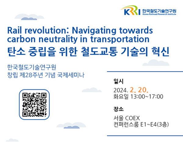 한국철도기술연구원(이하 철도연, 원장 한석윤)은 20일 서울 코엑스 컨퍼런스룸E에서 ’탄소 중립을 위한 철도교통 기술의 혁신‘을 주제로 창립 28주년 기념 국제세미나를 개최했다고 밝혔다.